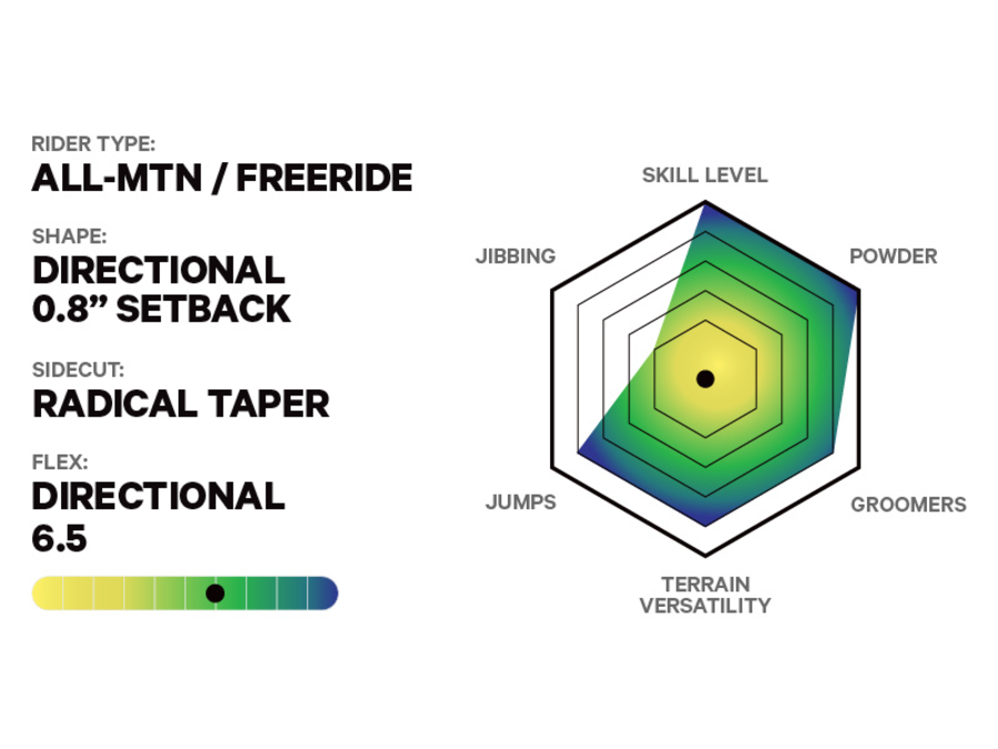 - Neu für 2025: Das Board verfügt jetzt über ein entspannteres Flexmuster, was es für eine breitere Palette von Fahrern zugänglicher macht. Dies ist eine bedeutende Abweichung von früheren Modellen, die dafür bekannt waren, ziemlich steif zu sein.