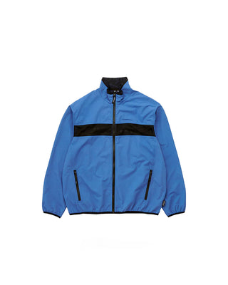 A distinctive mesh insert across the chest and back enhances ventilation and gives the jacket a functional, performance-driven aesthetic. Two zippered side pockets provide secure storage for essentials, keeping hands free while on the move. The stand-up collar offers additional wind protection and a structured silhouette.