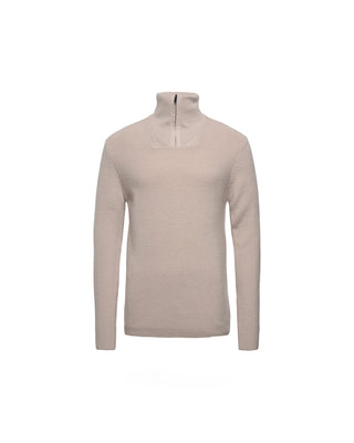 KnowledgeCotton Apparel 1/2 Neck Zip Merino Wool Rib Knit Kelp Melange
